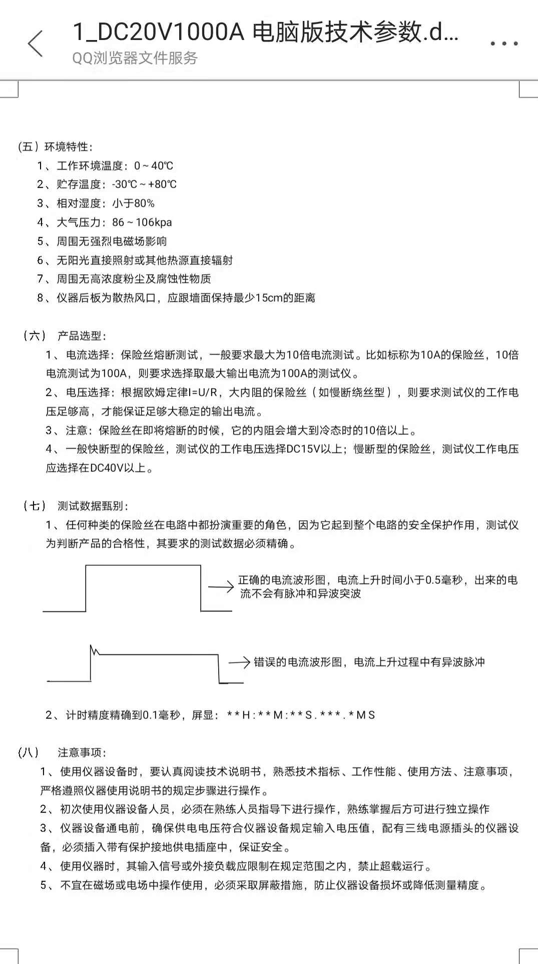 DC20V1000A ---- 技术参数/操作说明